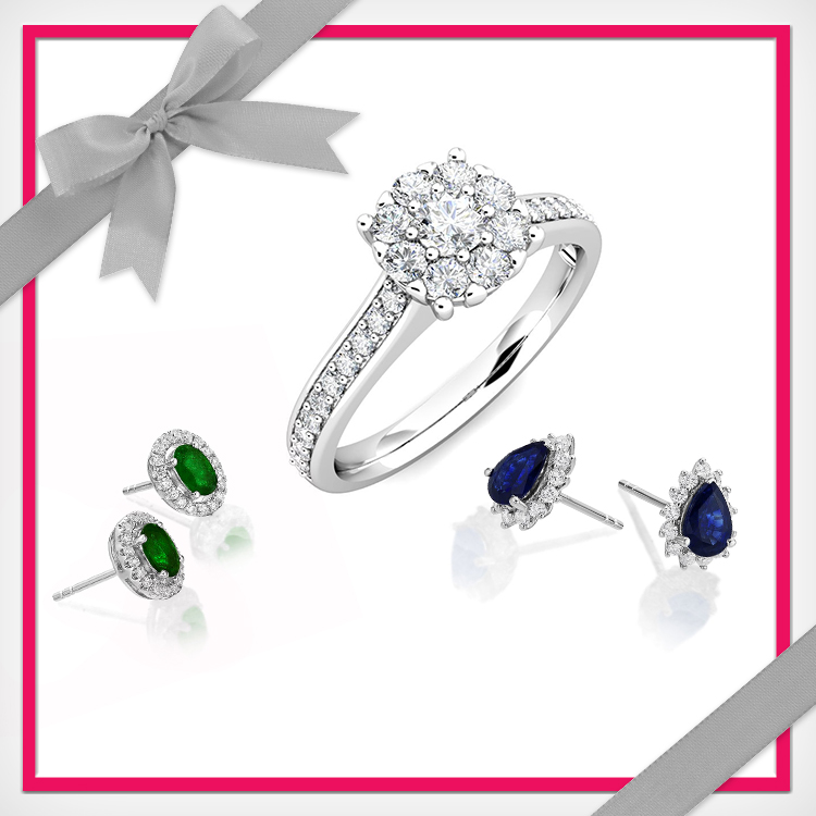 Diamond cluster earrings offer interest and sparkle. Clusters of small diamonds are set in stars, flowers and hearts, or around a large central diamond. Diamond cluster earrings are beautifully crafted in bezel, claw, and pave settings. Diamond is the hardest gemstone, and diamond jewellery has long been associated with love. This strength and symbolism make diamonds an ideal choice for engagement rings and wedding rings.