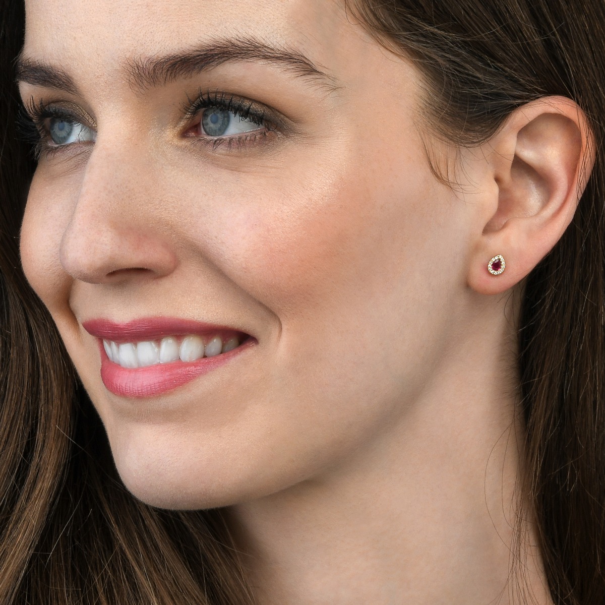 0.35ct Pear Ruby Earrings with Diamond Halo 18K Yellow Gold