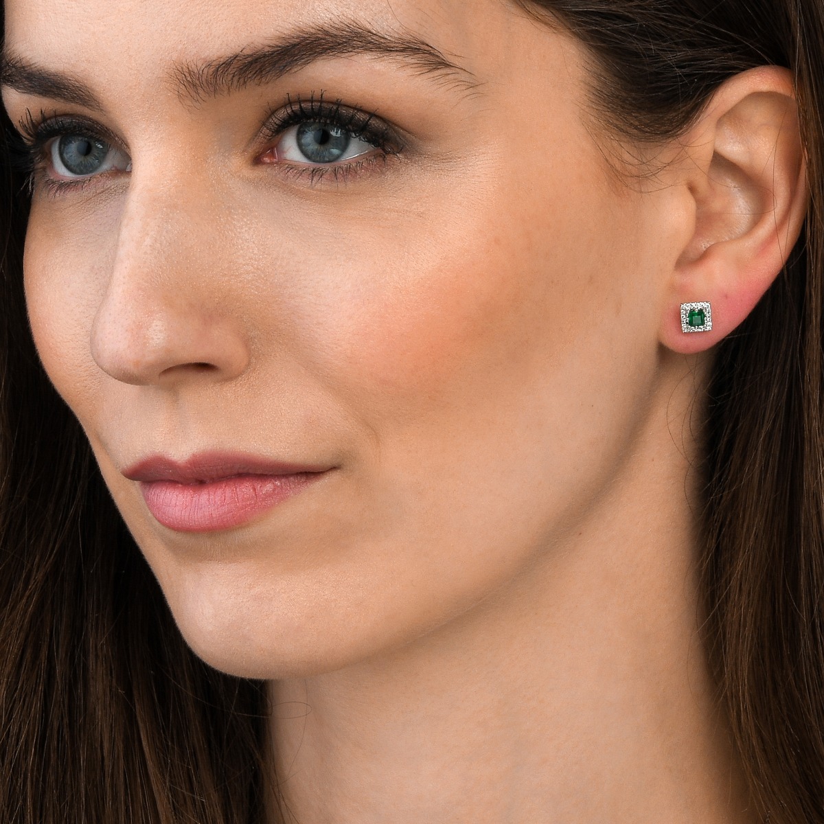 These elegant green emerald and diamond stud earrings include brilliant cut diamonds with a total weight of 0.11ct. These are carefully set to complement the featured green emerald which is square in shape and weighs 0.40ct. These earrings are crafted in 9K white gold and are complete with a pair of push on butterfly backs. The brilliance of the diamonds in combination with the green emerald gemstones set in white gold creates a beautiful effect.