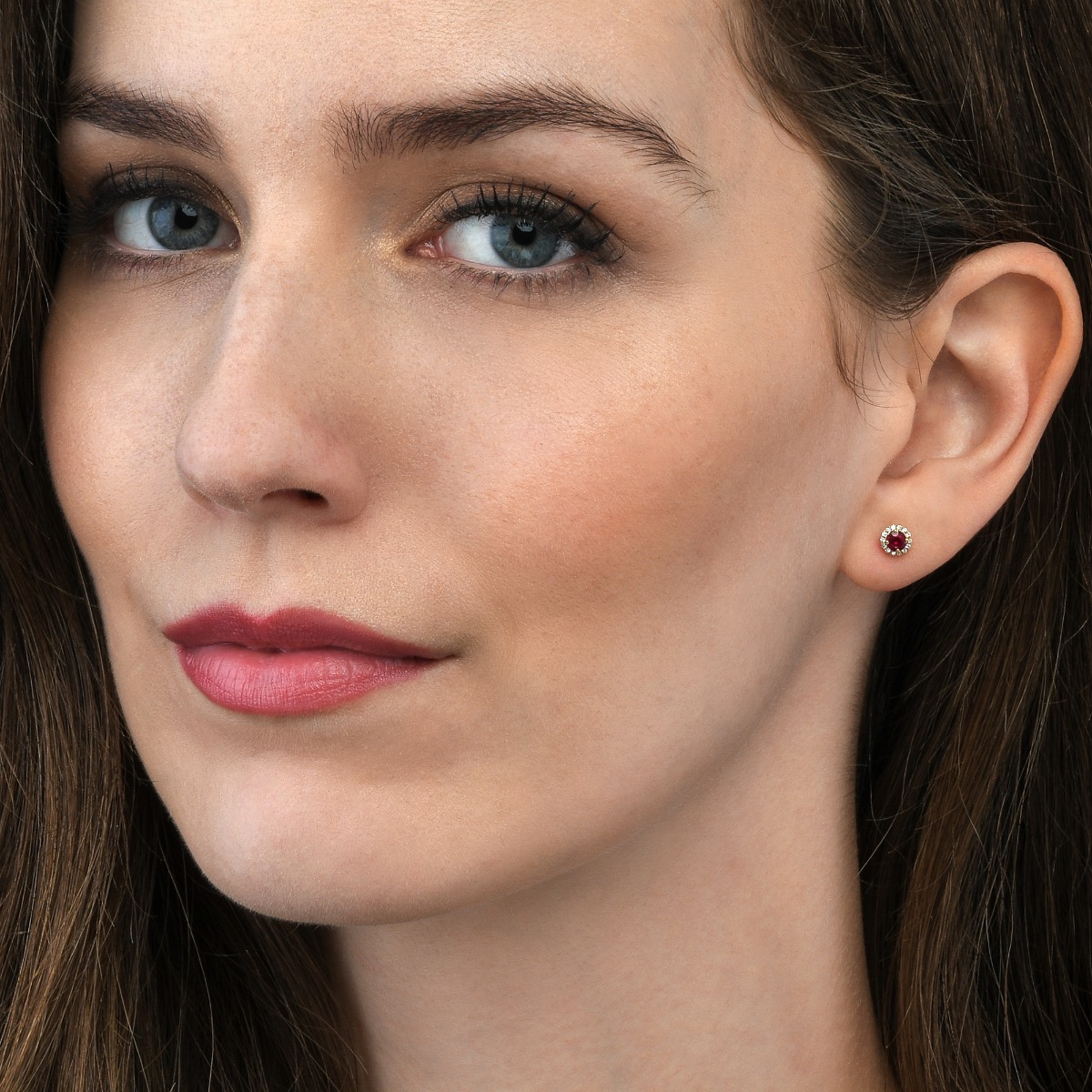0.40ct Ruby Stud Earrings with Diamond Halo 18K Yellow Gold