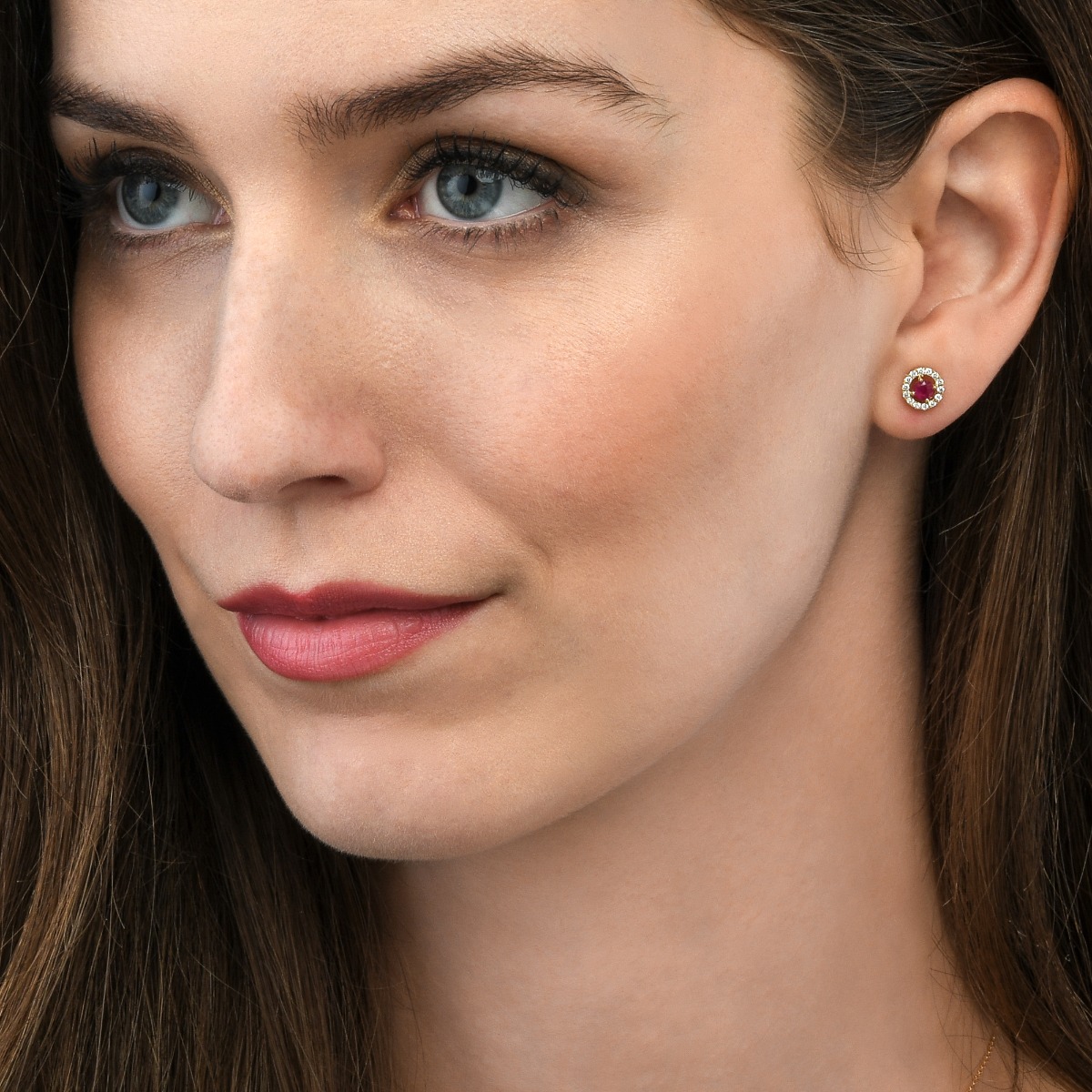 0.45ct Ruby Earrings with Diamond Halo 9K Yellow Gold