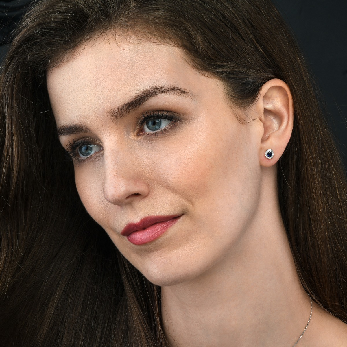 0.65ct Oval Sapphire Earrings with Diamond Halo 18K White Gold