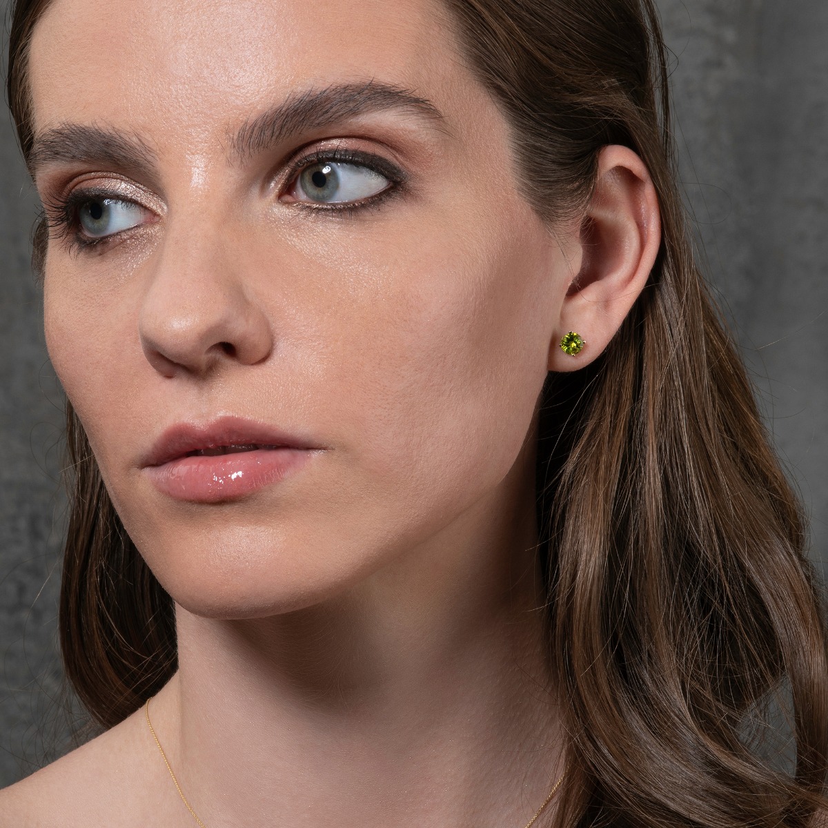 These simple peridot stud earrings have 6mm by 6mm brilliant-cut peridot gemstones with a total weight of 2ct. The minimalistic 9ct gold metal frame highlights the flawless peridot stones. These peridot earrings are crafted in 9K yellow gold and are complete with a pair of push-on butterfly backs. Effortless yet elegant these gemstones ear studs would be the ideal accessory for everyday wear.