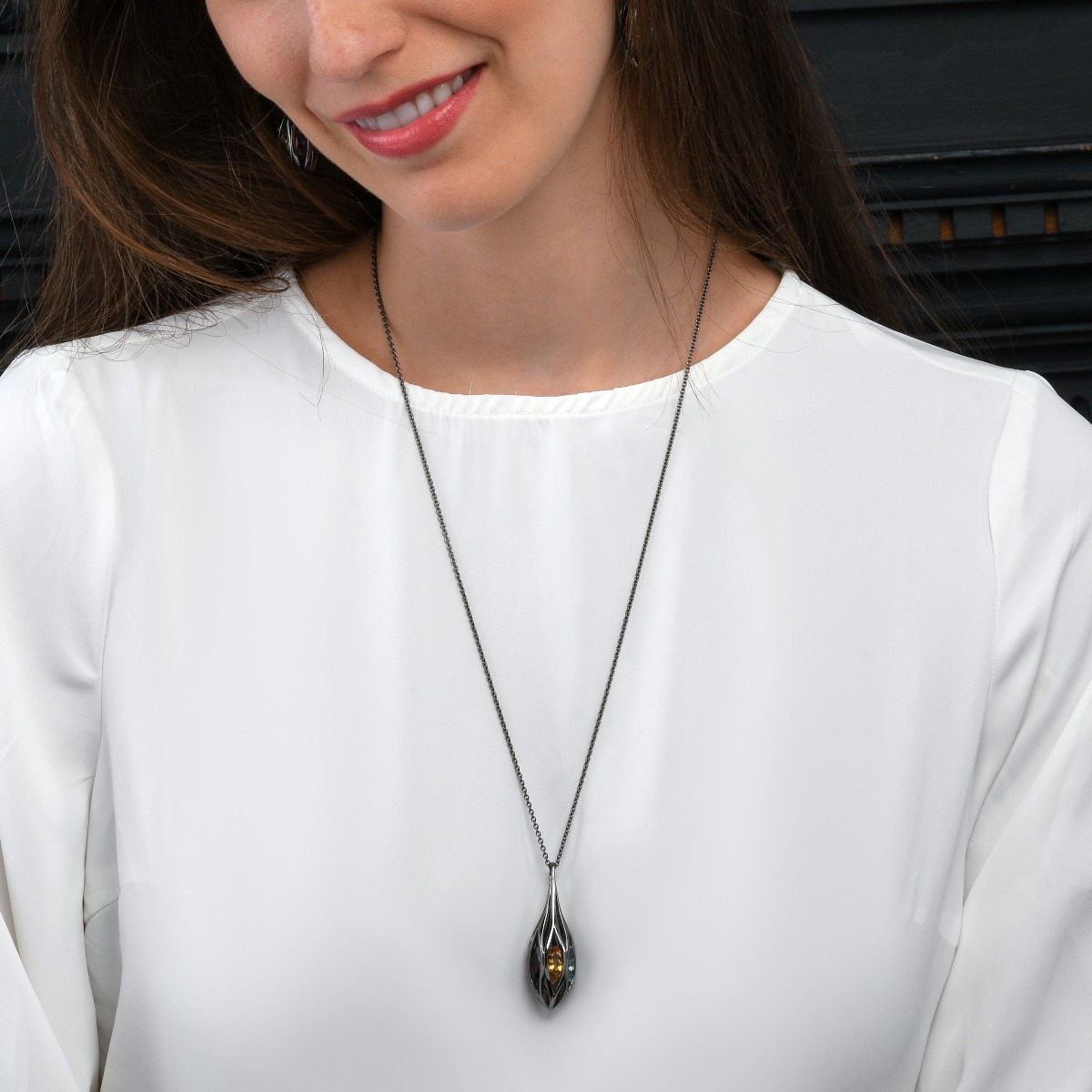 Long Black Pendant Necklace in Sterling Silver with Multicoloured GemstonesView detailsITEM REF: 2.05214