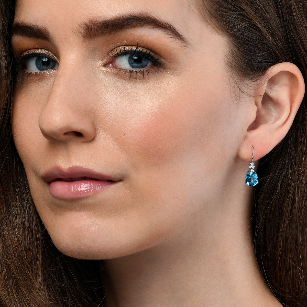 6.00ct Pear Shape Blue Topaz & 0.10ct Diamond Earrings 9K White Gold