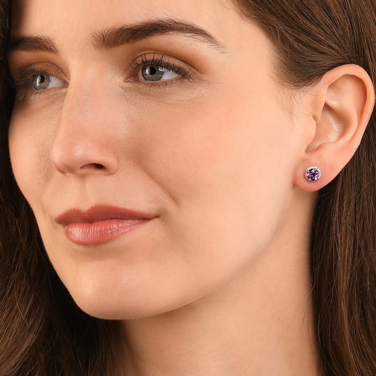 These enchanting purple amethyst and diamond stud earrings have brilliant cut diamonds with a total weight of 0.12ct. These are delicately set to complement the featured purple amethyst which is round and measures 6mm. The amethysts weigh 1.60ct. These earrings are crafted in 9K white gold and are complete with a pair of push on butterfly backs. The brilliance of the diamonds in combination with the purple amethyst gemstones set in white gold is perfect.