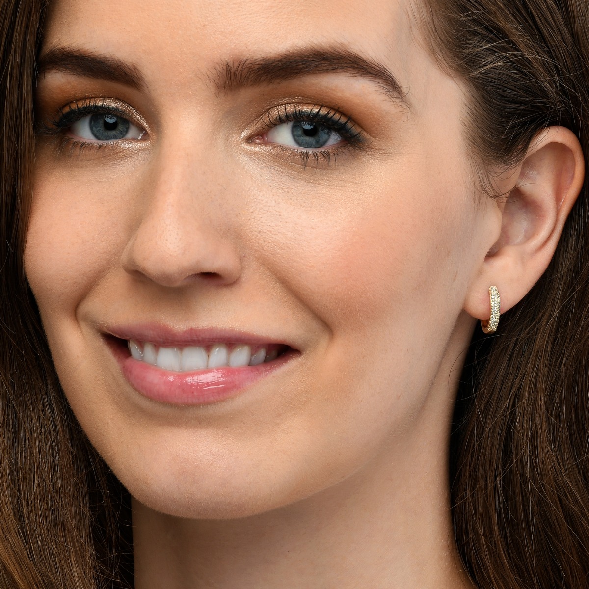 Diamond Hoop Earrings 0.25ct Oval Pave Diamond Hoops 9K Yellow Gold