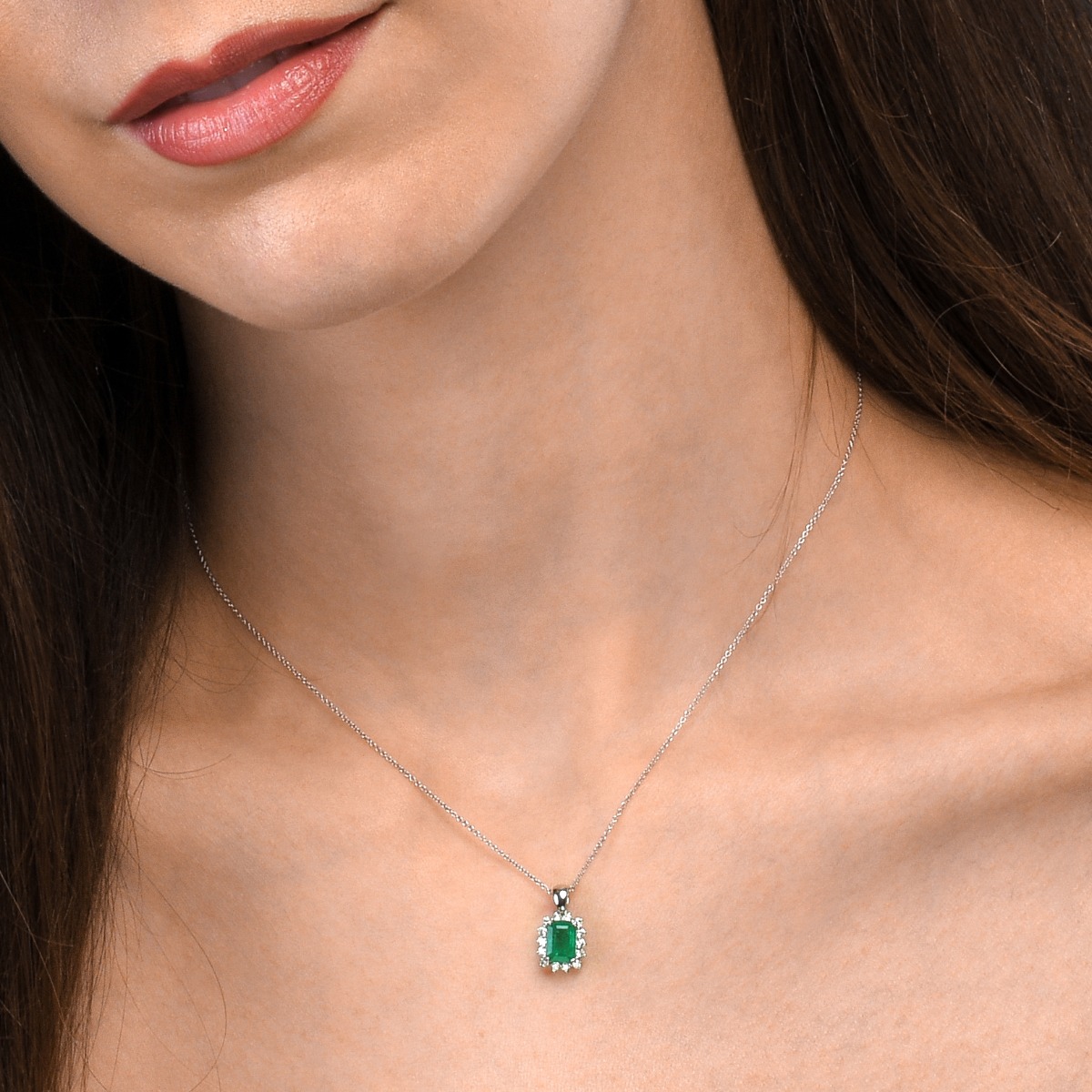 Emerald Pendant Necklace with 0.22ct Diamonds 18K White Gold
