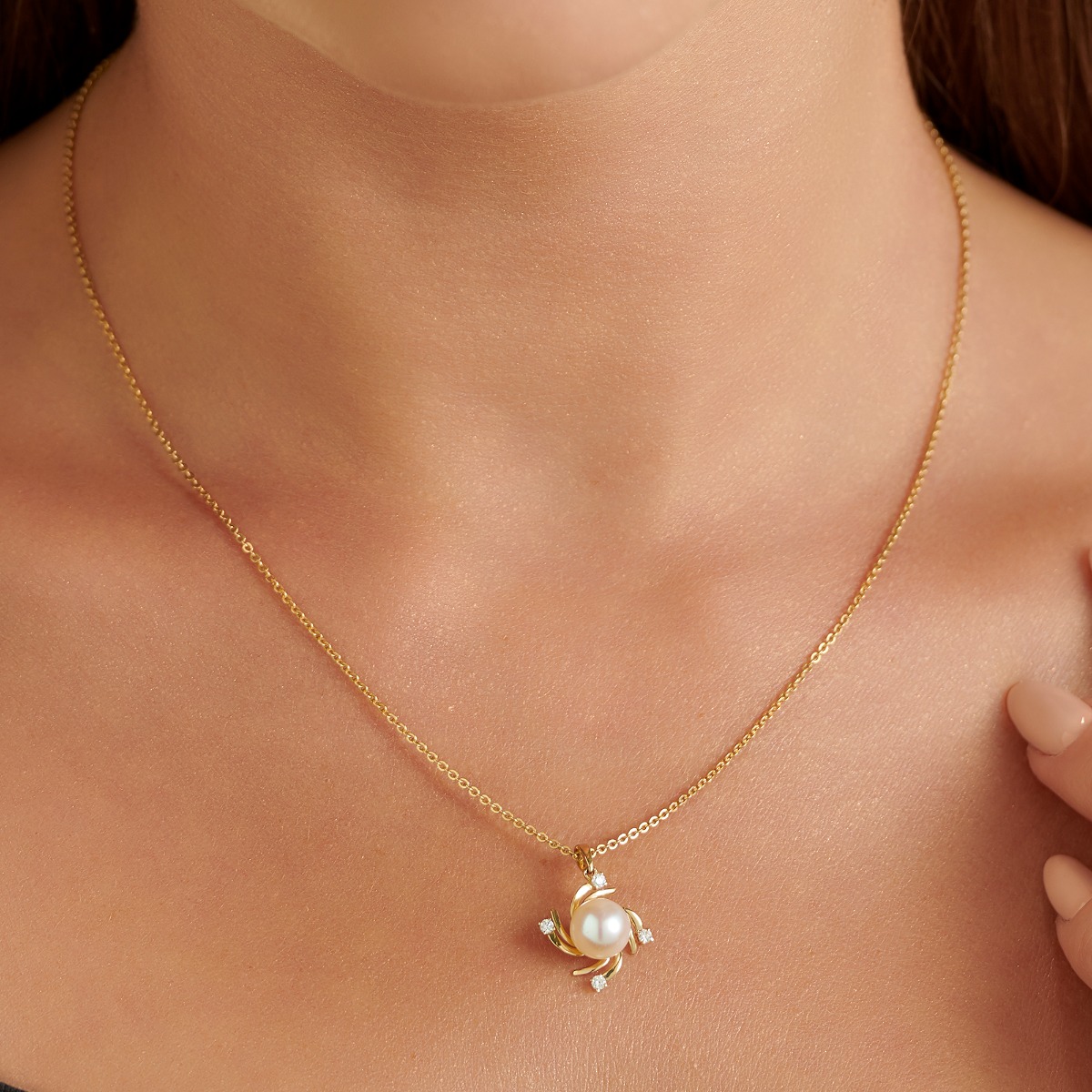 Freshwater Single Pearl Pendant 0.09ct Diamond in 9K Yellow Gold