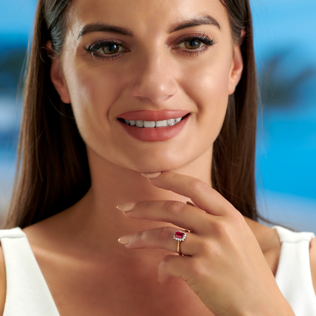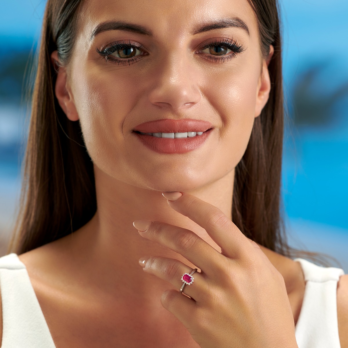 Treat yourself or a loved one to a scarlet Red Ruby Ring set with diamonds on a beautifully designed ladies ring in 18K white or yellow gold, all items in our collection are available in a selection of ring sizes. Our beautiful assortment of Ruby Rings come in a variety of shapes and sizes of Rubies that are set with a touch of diamonds! Ruby is a gemstone famous for its cultural importance. Did you know that in ancient times the ruby was thought to be queen of all gems and gem of kings? Rubies are also famous for being extremely strong and resistant to wear. Rubies are gemstones with a lasting appeal! They are often related with love, passion and strong feelings of affection due to their vibrant deep red hue. In antiquity they were famously considered as some of the most significant gifts in the start of a new relationship and are nowadays considered as some of the most coveted Valentine's Day gifts, Birthday gifts and Anniversary gifts. They are Also famous for being ideal when given as ruby wedding rings and ruby engagement rings. The Ruby is also the Birthstone of the month July. Rubies are something so pretty and majestic yet personal and loving when given as a gift. Truly a gem of the romantics, it makes the perfect wedding or engagement ring. If you are not sure as to what to get for your loved one a vibrant red ring set in bright high quality diamonds by Diamond Treats is the ideal gift that will mark a beautiful moment in your loved one's life. Our jewellery is timeless, and our rings are the pinnacle of creation that could easily become the pinnacle of your loved one's life and memory for years to come. Why wait? Moments last forever only in memories, do not let time pass without creating them!