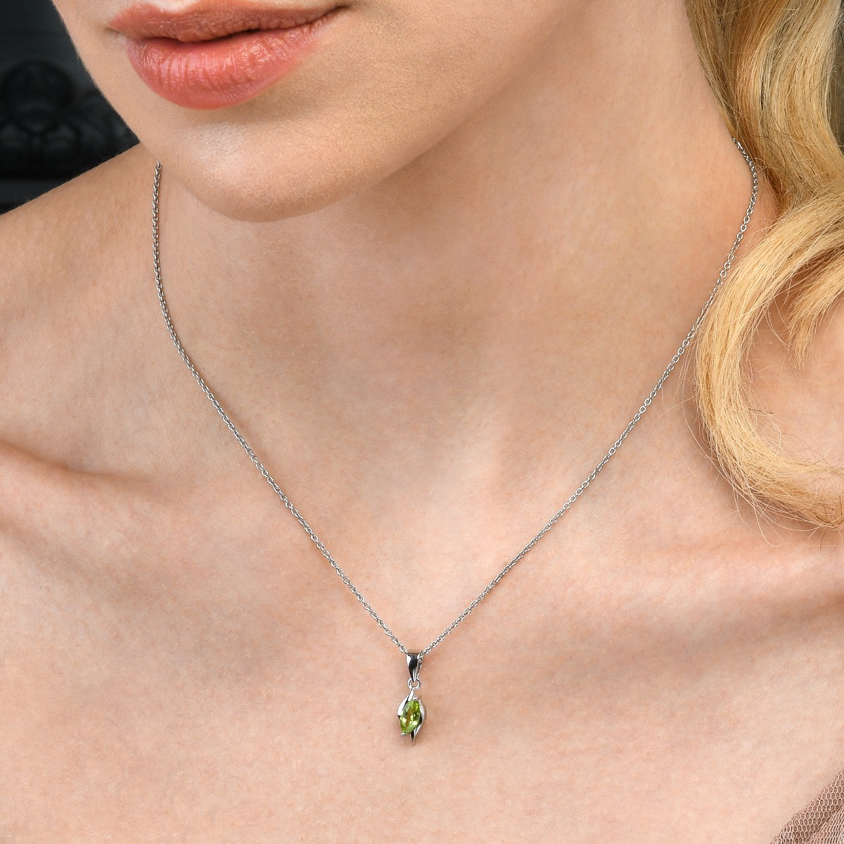 Marquise Shaped Peridot Pendant Necklace in Sterling Silver