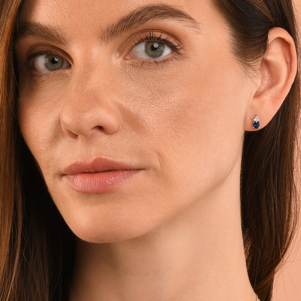 Oval Sapphire Stud Earrings with 0.10ct Diamonds 9K White Gold