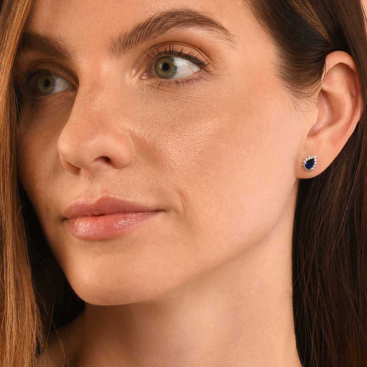 Pear Sapphire Stud Earrings 0.25ct Diamond Halo18K White Gold