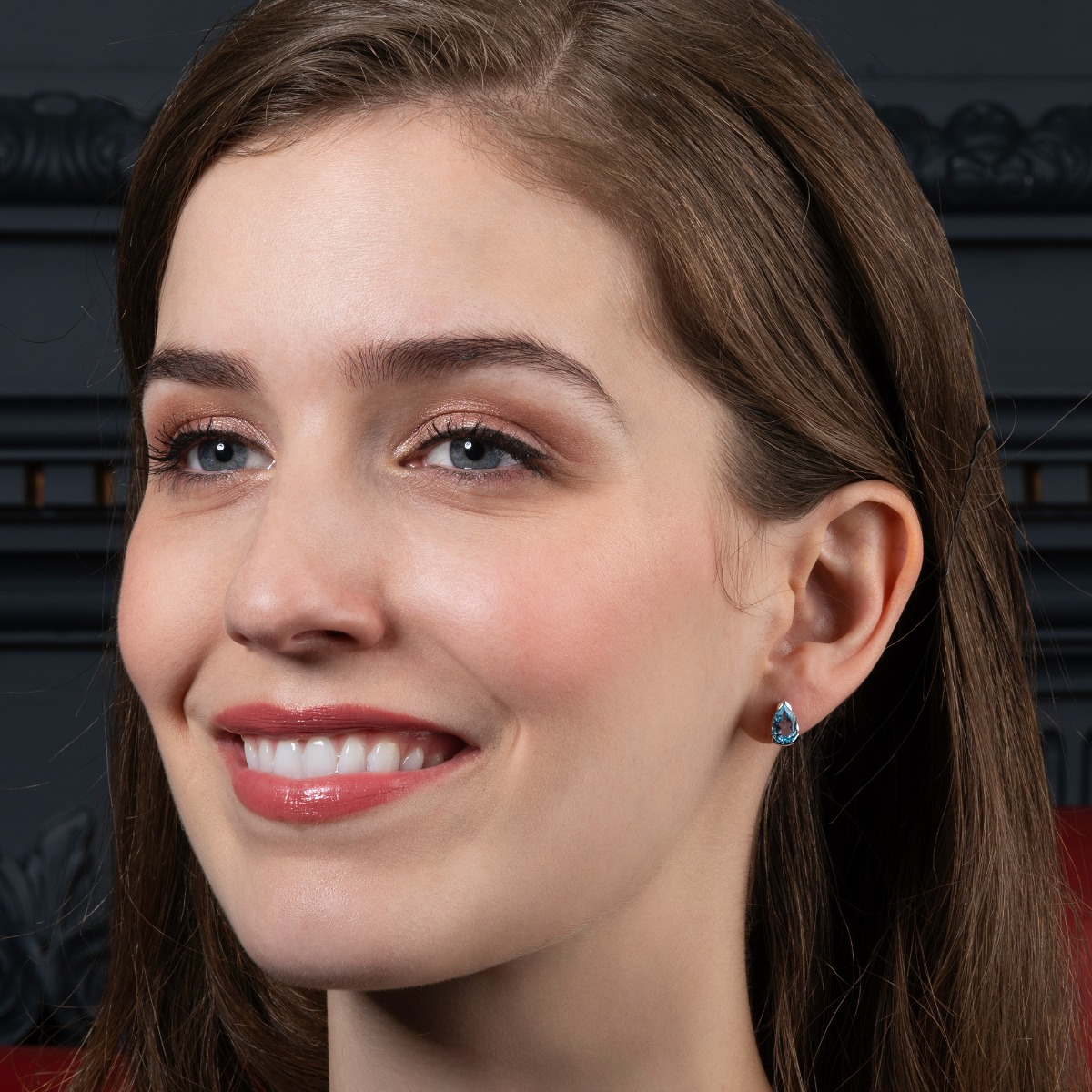 Elegant and effortless, these sterling silver blue topaz stud earrings with their half bezel set metal frame are modern yet classically simple. With 6mm by 9mm pear-shaped blue topaz gemstones, these earrings would be perfect for everyday wear.