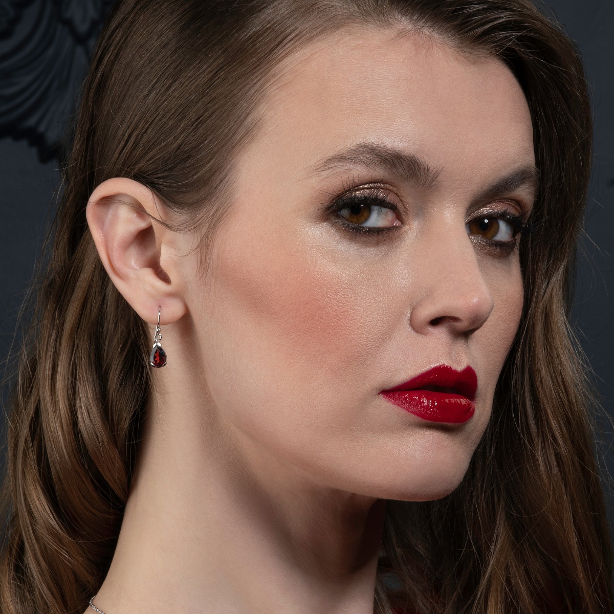 Pear Shaped Garnet Drop Earrings in Sterling Silver