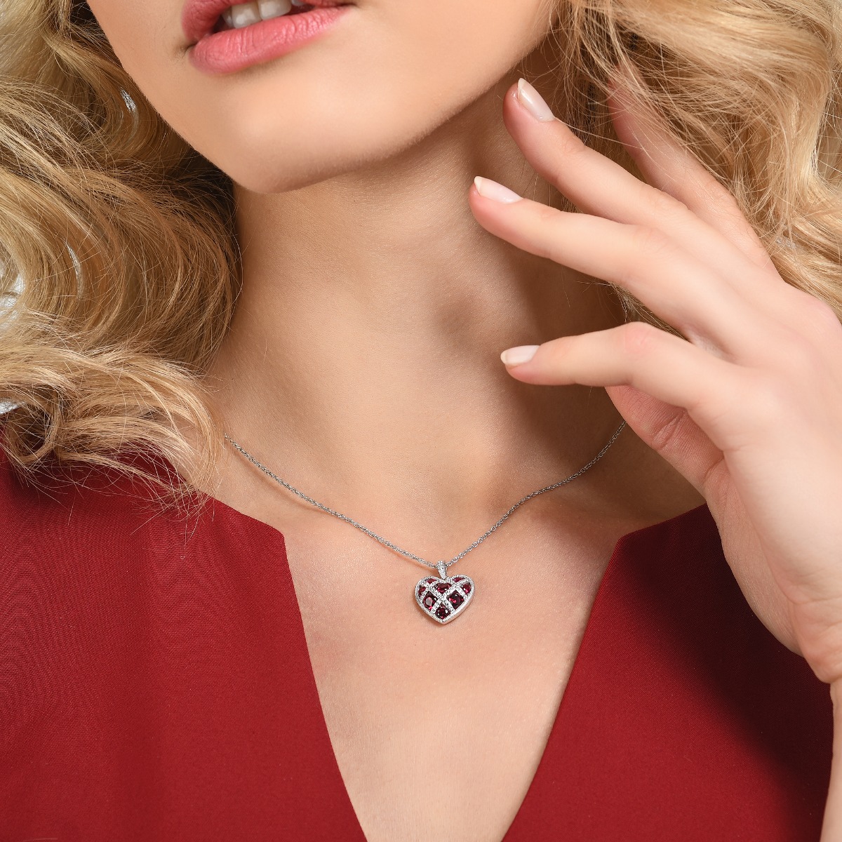 Sterling Silver Red Heart Lattice Pendant Necklace