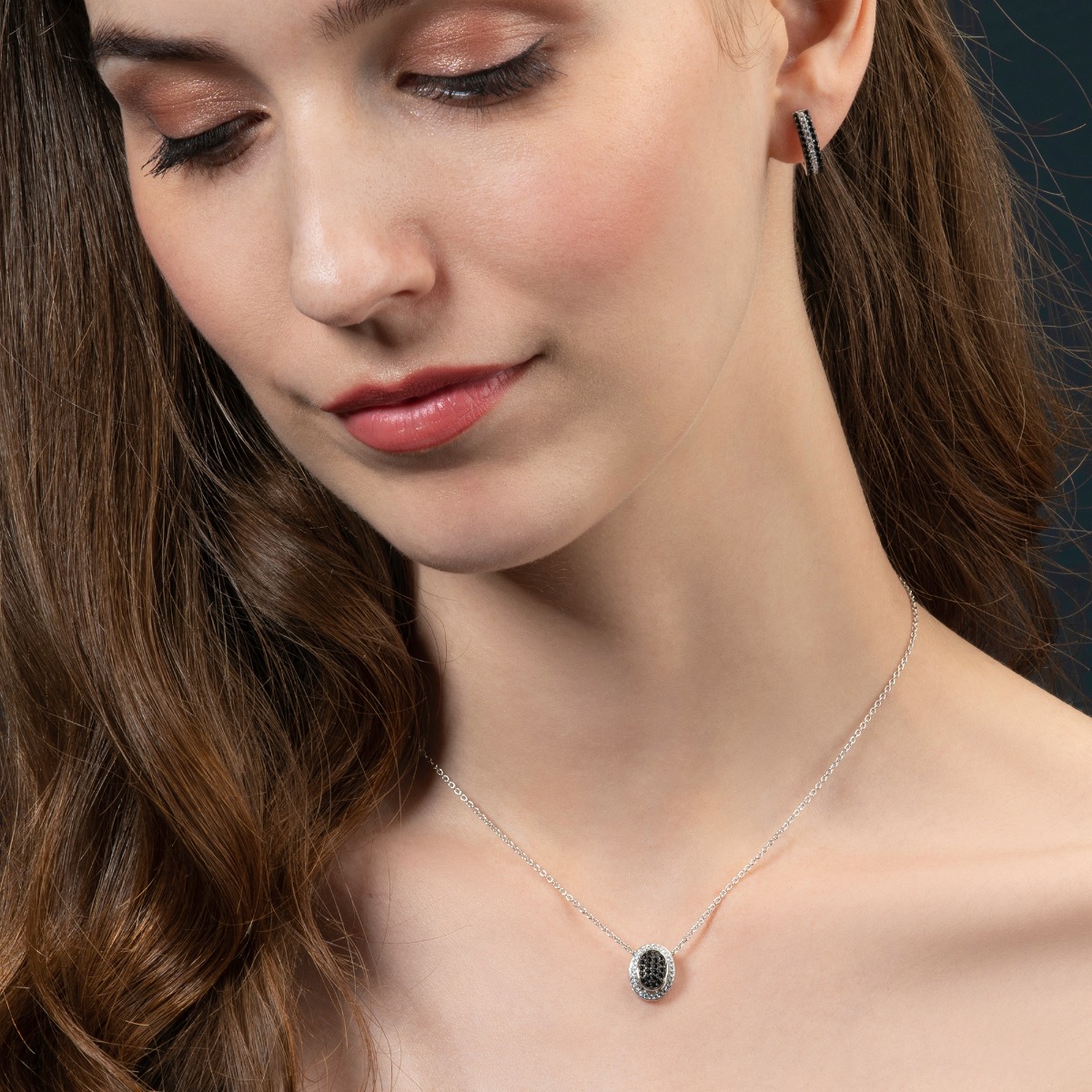 Refined and distinguished, this reversible and versatile black and white pendant necklace can be worn in multiple different ways. The delicate black stones and sparkling cubic zirconia stones brought together in refined, elegant sterling silver settings.