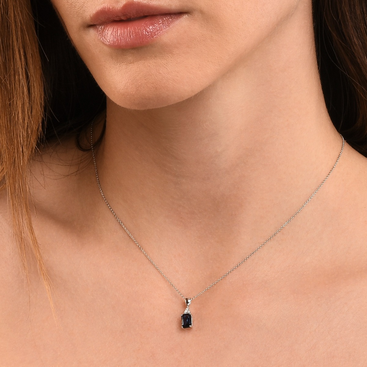 Sapphire Pendant Necklace with 0.06ct Diamonds 18K White Gold