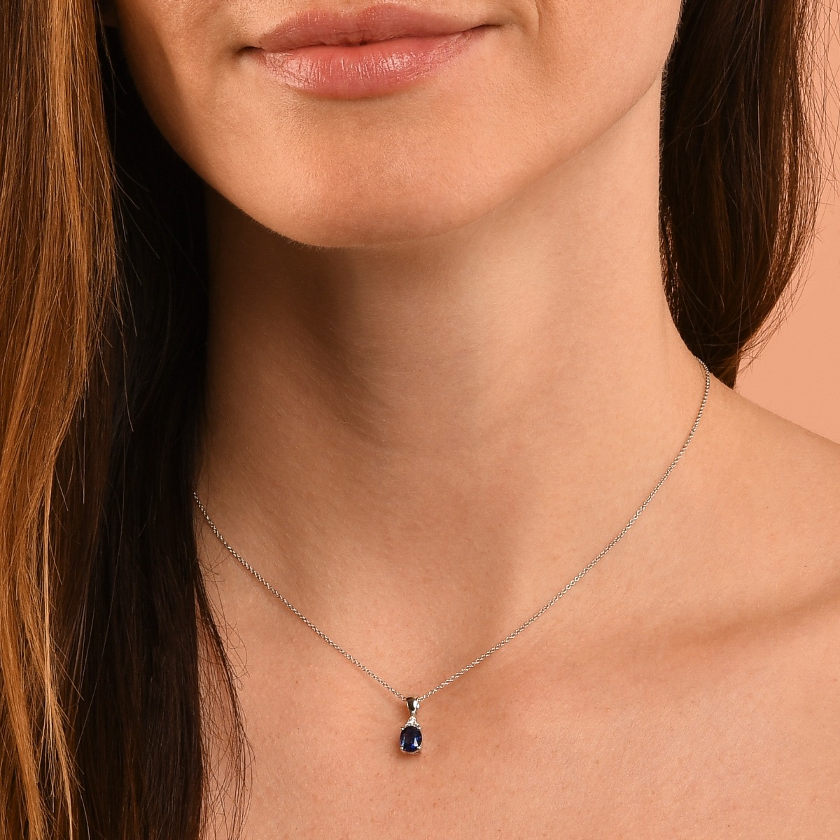 Sapphire Pendant Necklace with 0.06ct Diamonds 9K White Gold