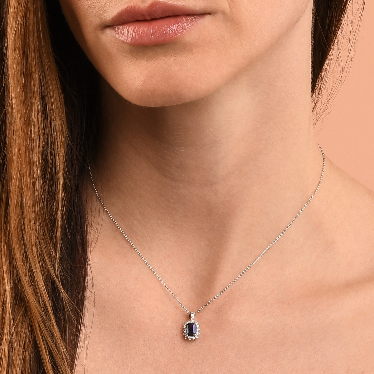 Sapphire Pendant Necklace with 0.22ct Diamonds 18K White Gold