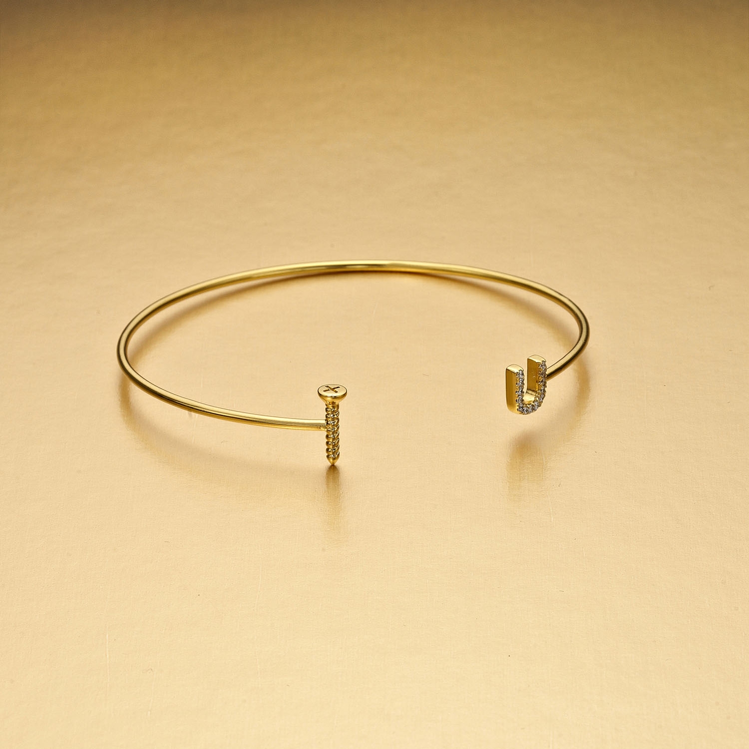 Yellow Gold Plated Sterling Silver 'Screw-U' Bangle with Cubic ZirconiaView detailsITEM REF: ESBA592EAX/2033SY