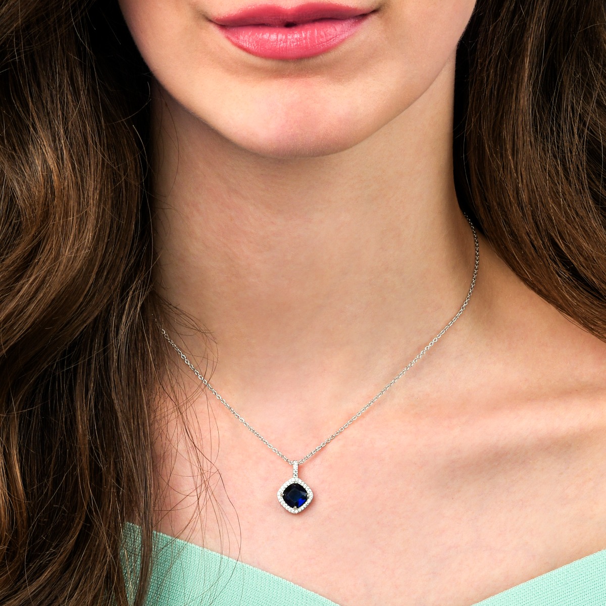 Sterling Silver Cushion Shaped Blue Pendant NecklaceView detailsITEM REF: YHP-03832SP/2198N