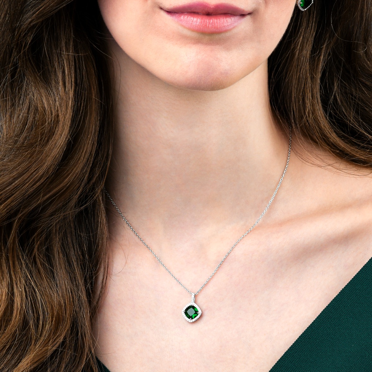 Sterling Silver Cushion Shaped Green Pendant NecklaceView detailsITEM REF: YHP-03832EM/2198N