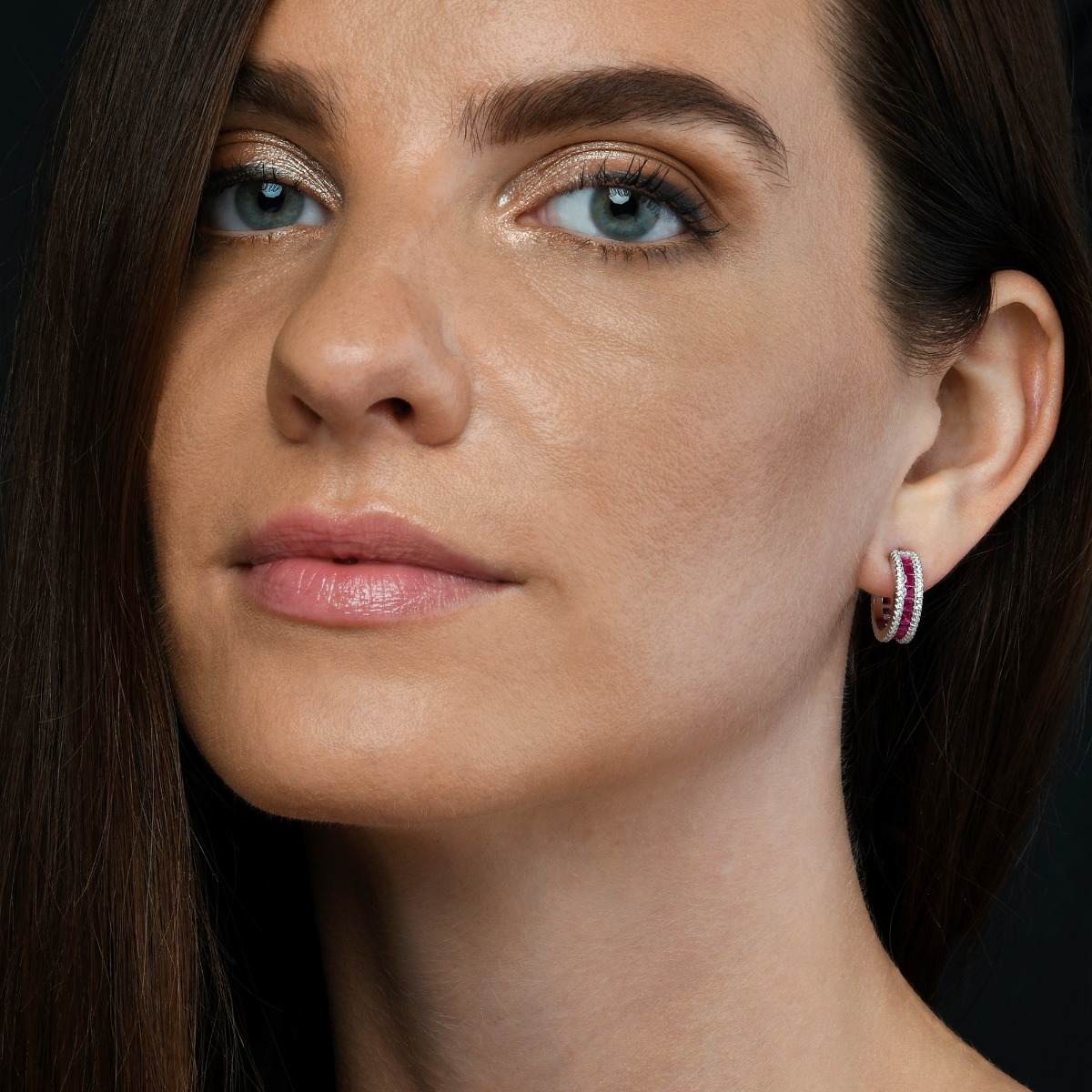 Sterling Silver Red Hoop Earrings with Cubic Zirconia Stones