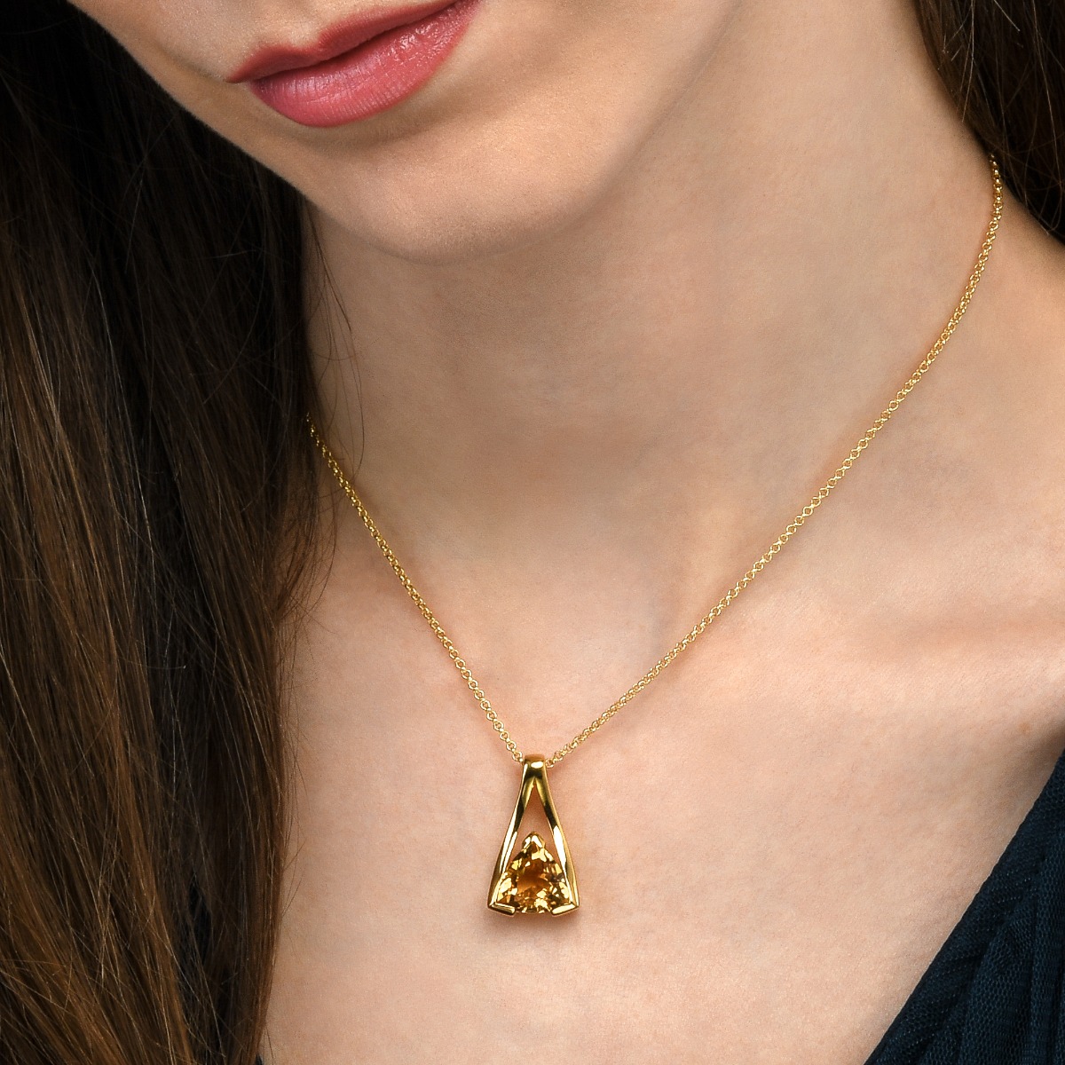 Elegant pendant with a 9mm trillion cut Citrine gemstone, this necklace comes with an adjustable 18-inch chain with extra links allowing you to wear it to 16 inches and 17 inches.
