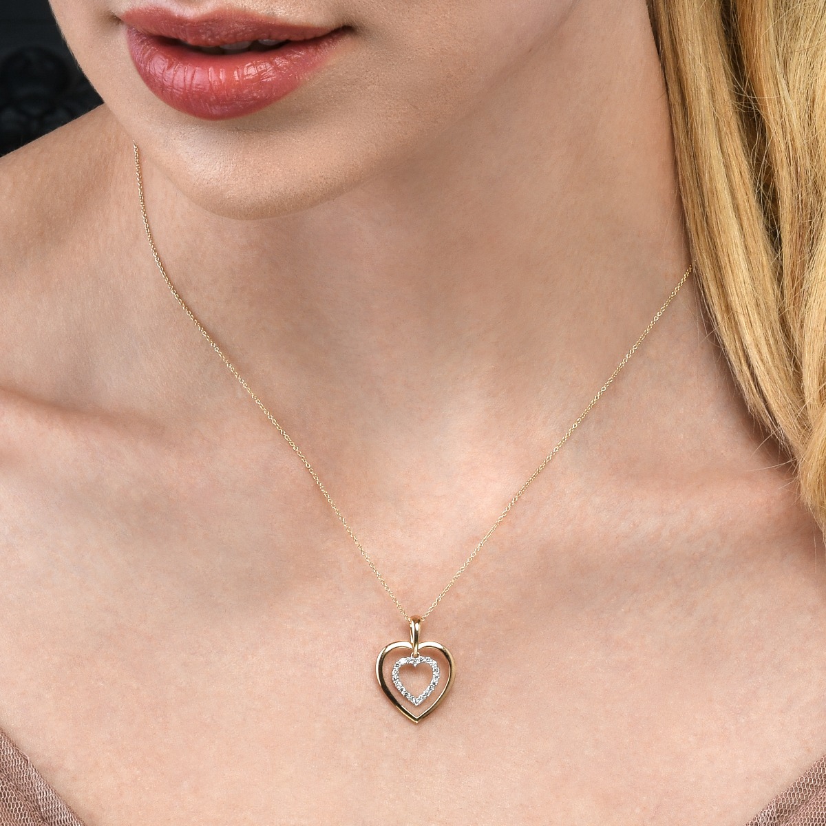 Twin Diamond Heart Pendant 0.23ct Diamond 9K Yellow Gold