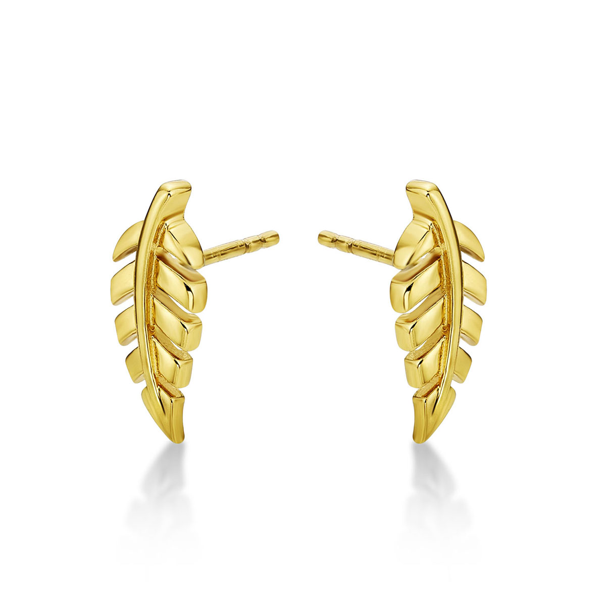 Yellow Gold Plated Sterling Silver Feather Earrings